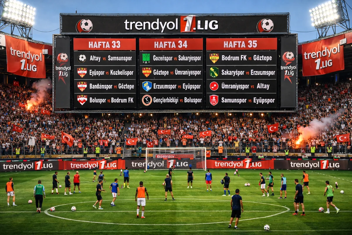 Türkiye Futbol Federasyonu, Trendyol 1. Lig’de 33, 34 ve 35. haftalarda oynanacak olan maçların tarihlerini açıkladı. Futbol tutkunları için heyecan dolu günlerin yaklaşmakta olduğu görülüyor. İşte detaylar: